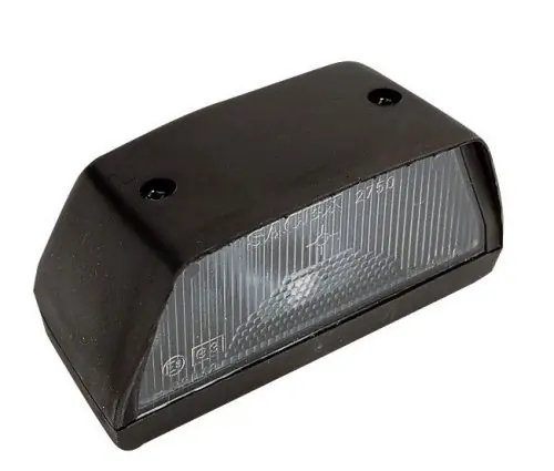 Nagy méretű, fekete rendszámvilágítás.