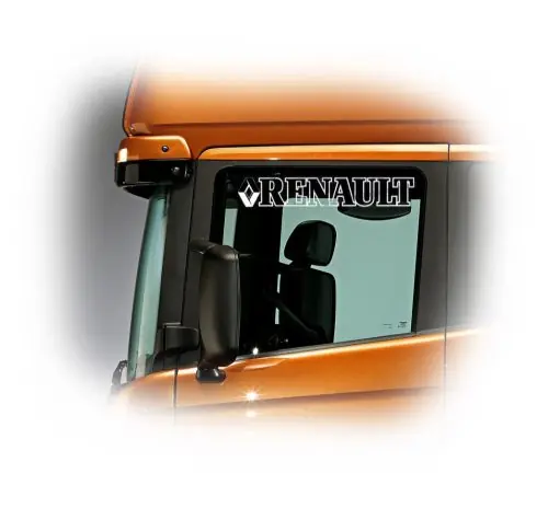 Felirat és kamion logó ablakba.