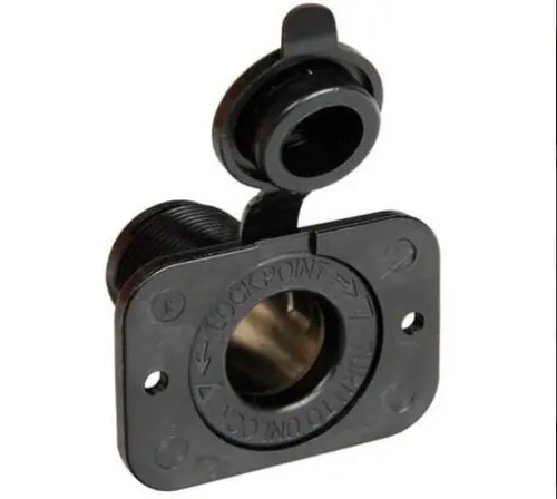 Süllyesztett szivargyújtó aljzat VÍZÁLLÓ. A keret levehető, így kerek furatba is szerelhető.Külső vagy belső használatra.12/24 VMax. 20 A