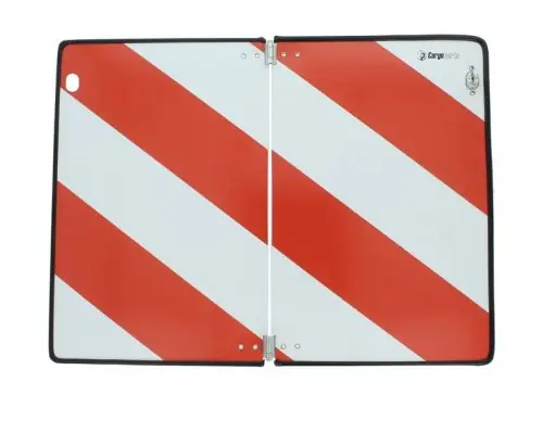 Piros-fehér, túlnyúló rakományt jelző FÉM tábla.Becsukható kivitel, élvédős szélekkel.Mérete: 30×40 cm