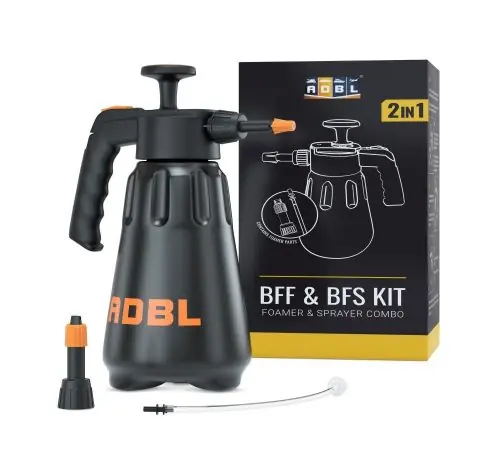Az ADBL BFF és ADBL BFS nagynyomású kézi habosító és permetező egy készletben. A konstrukciónak köszönhetően mindössze két alkatrész cseréjével permetezőként használhatjuk a habosítót vagy épp fordítva.