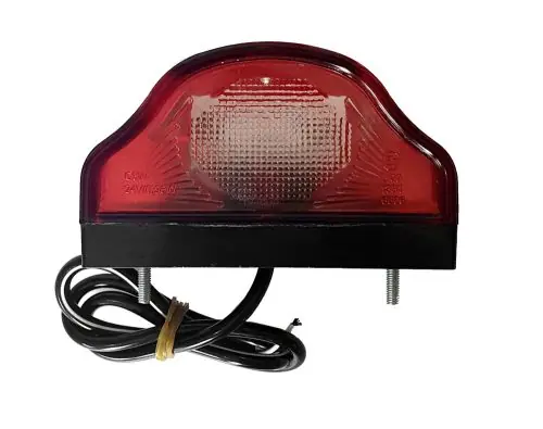 Rendszám megvilágító LED lámpa.Áttetsző piros házban.Befoglaló mérete: 101 x 60 x 58 mmRögzítés csavartávolsága: 72 mmFeszültség: 12/24 VMegfelelőség: E9 1109001 L00 1381 6606(közúti forgalomban használható)